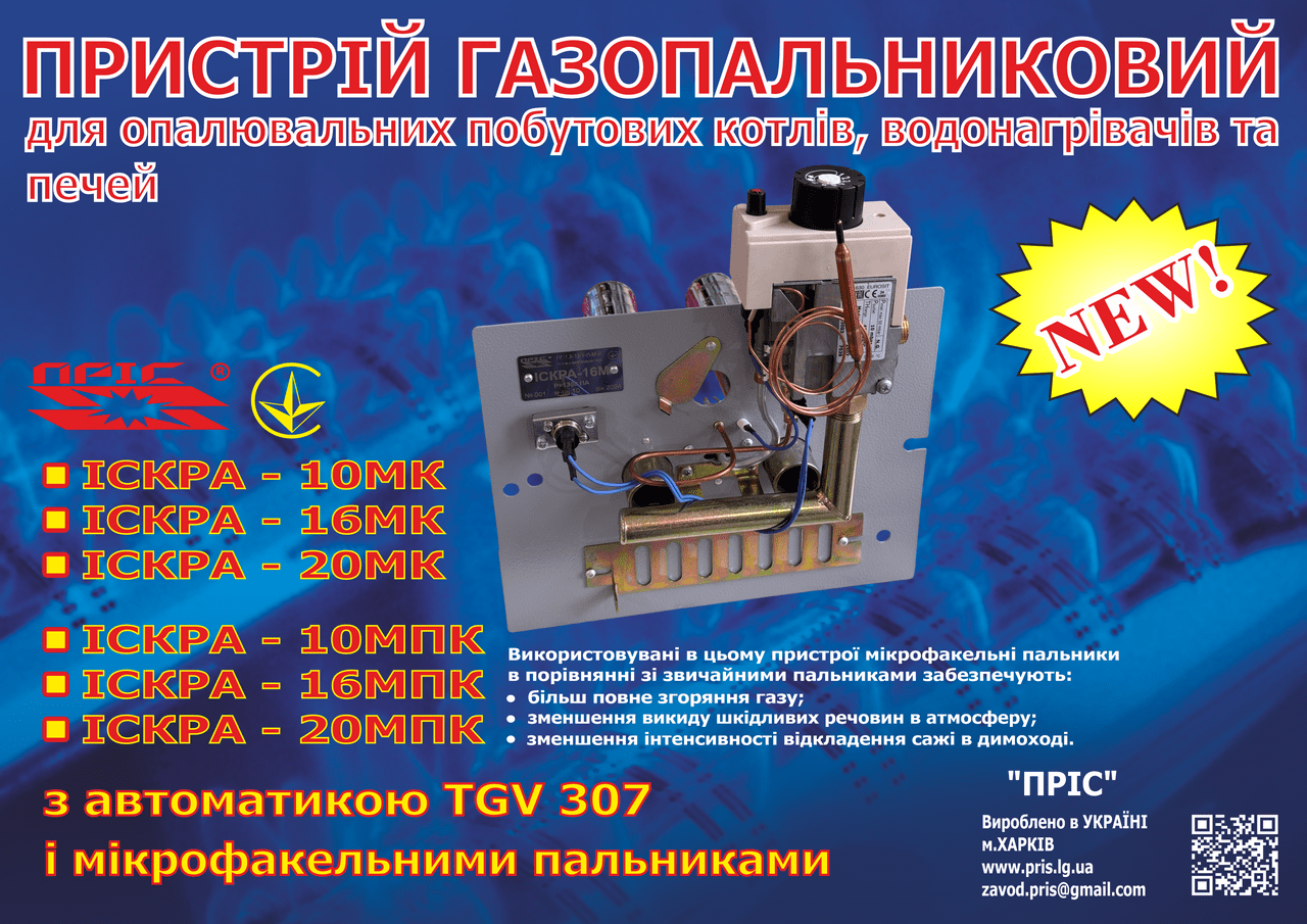 Газопальниковий пристрій ІСКРА-16МПК призначений для печей.